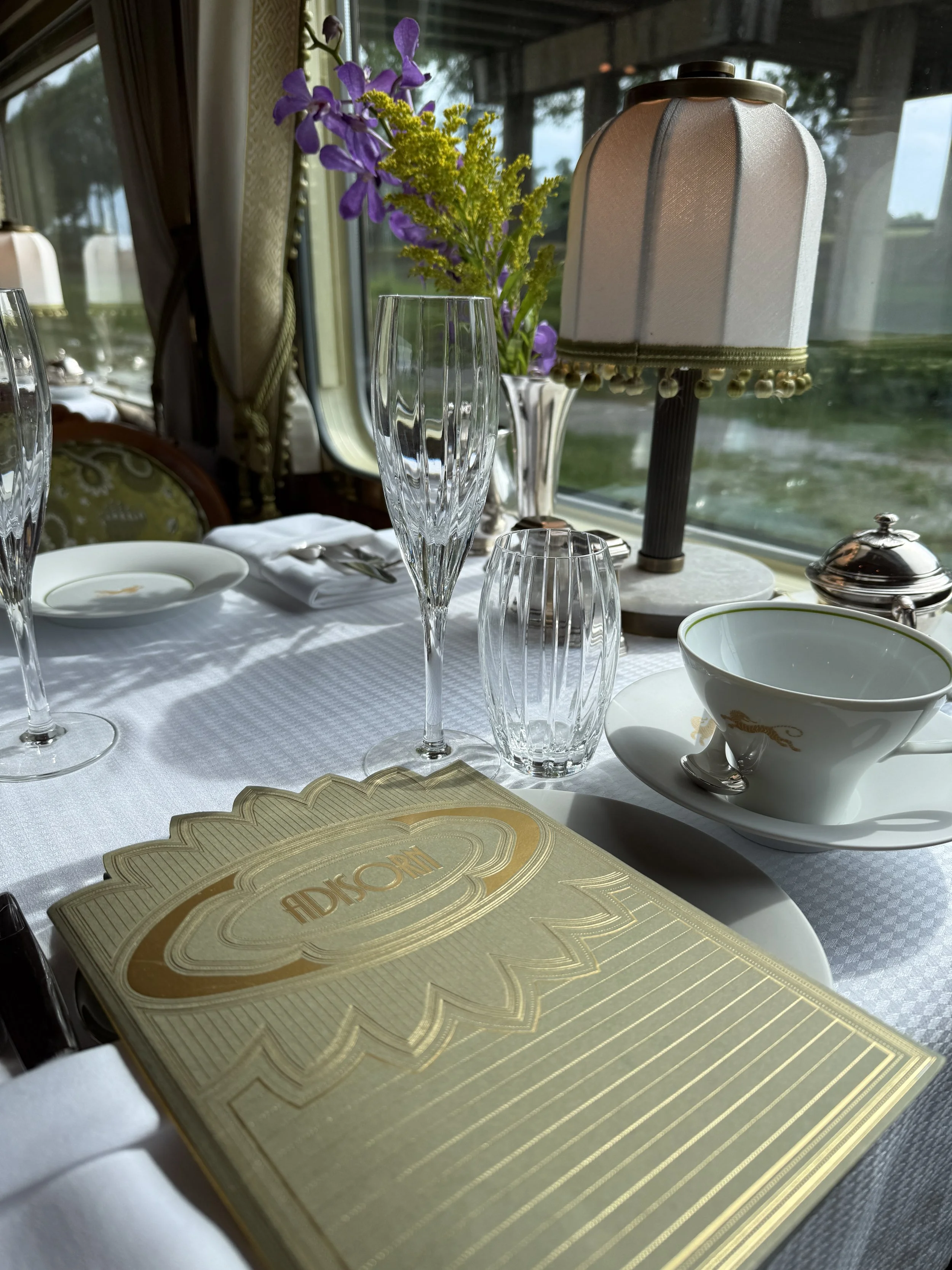 The experience began on a Sunday afternoon with a private transfer arranged by Belmond. Being collected directly from the hotel immediately altered the psychology of departure. There were no logistical puzzles to navigate, no hurried transitions between checkpoints. Upon arrival at the station, luggage was received and discreetly tagged with quiet efficiency, allowing the boarding process to feel composed and entirely free of friction. Stepping into the cabin offered the first tangible reminder that rail travel operates by a different spatial logic. The design is undeniably compact, a reality that can initially register with surprising force. Shortly after we had settled in, our butler Navin stopped by to introduce himself. In those first moments, he perceptively recognized a degree of unease from my husband, who was quietly assessing the dimensions of the room. Navin handled the situation with remarkable ease. With calm assurance, he explained the functional rhythm of the cabin — how the space would evolve throughout the day, how he would assist in keeping everything organized, and how the room’s layout was designed to remain both comfortable and efficient over multiple days. The interaction was brief yet quietly transformative. What might have lingered as hesitation instead dissolved into reassurance. True to his word, Navin maintained this sense of order and fluidity throughout the journey. Each day the cabin felt refreshed, thoughtfully arranged, and never once disorganized — a subtle yet deeply important contribution to the overall comfort of the experience.