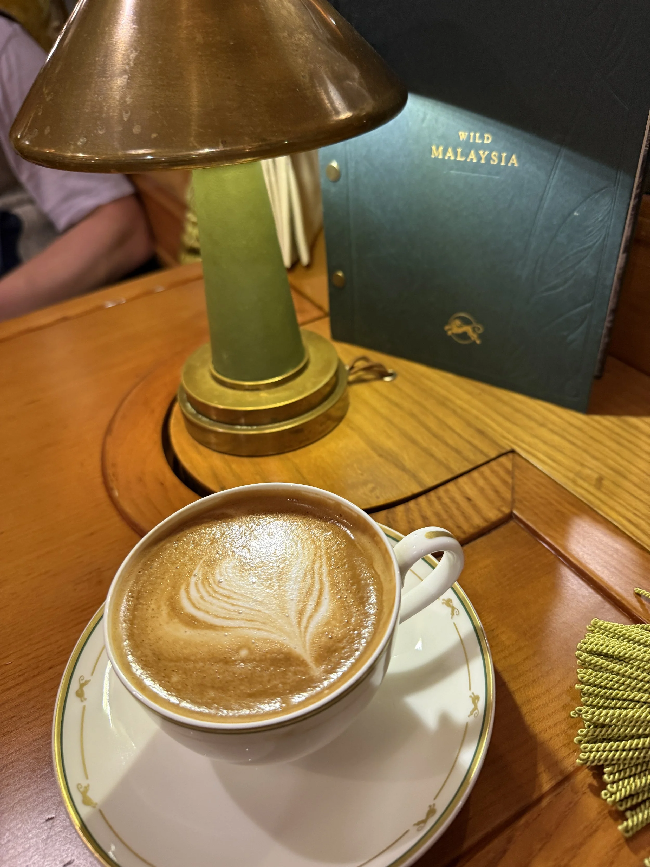 Mornings aboard the Eastern & Oriental Express carried their own understated pleasures. Breakfast could be taken privately or in the dining car, and the early hours quickly developed a relaxed cadence. Rising slightly ahead of the scheduled service allowed Navin to prepare the cabin for the day and reveal the tray table positioned by the window, transforming breakfast into a quiet observational ritual accompanied by uninterrupted views of the passing scenery. Large windows throughout the train preserved a continuous connection to the outside world. Dense greenery, small towns, and vast expanses of palm trees unfolded with a curious sense of calm. Even as the train covered considerable distance, the landscape appeared to move with surprising gentleness — a perceptual quality unique to rail travel.